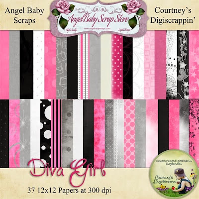 Courtney and Angel have collaborated on a fabulous new kit called Diva Girl it is a beautiful girly kit in hot pink,white,black and gray colors.The kit has 124 elements and 34 papers and will be available for $4 until the 16 June and thereafter will be $6.So go along to Angel baby scraps to get this beautiful kit while it is still on sale